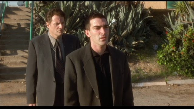 Above left - from Collateral: Hit man Vincent (left) and taxi driver Max are together, throughout almost the entire movie. Above right - from Manhunter: Will Graham (left) and Francis Dollarhyde don't meet each other until their showdown at the end of the movie.